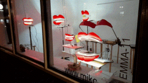 Een installatie gemaakt op basis van een eerder internationaal educatie project COMPLIMENTEN CORNER, waarbij technasiumleerlingen een bewegende lippensculptuur moesten maken die complimenten uitspreekt .